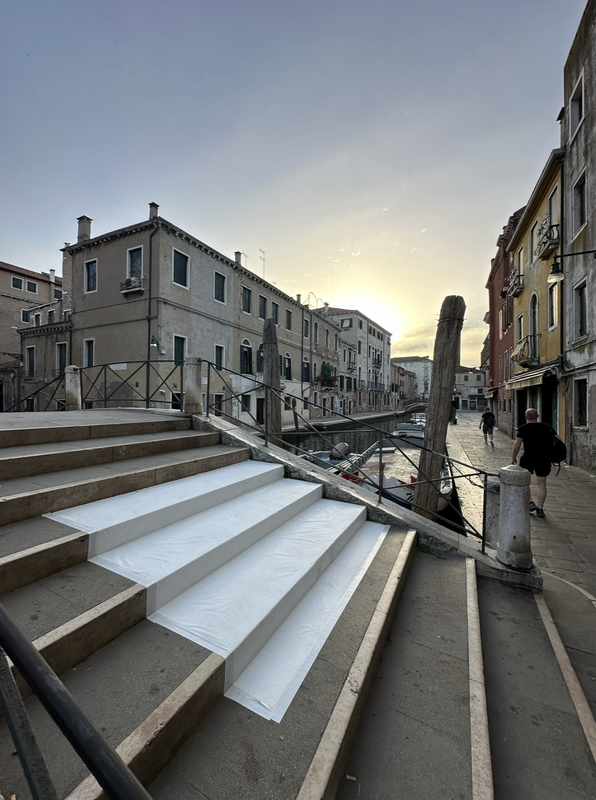 The first in the "Passage" series, this project involved placing a blank canvas on the ground in a specific urban location for a limited time. Passage, Venice was set on - Ponte dei Pugni - from dawn to dusk.